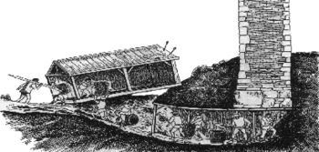 Powered by gravity, this formidable weapon utilises the long end of an arm on a pivot which was hauled or winched down and then released, allowing a heavy counterweight at the short opposite end of the arm to drop and swing the long end upward through a vertical arc.